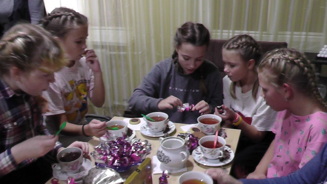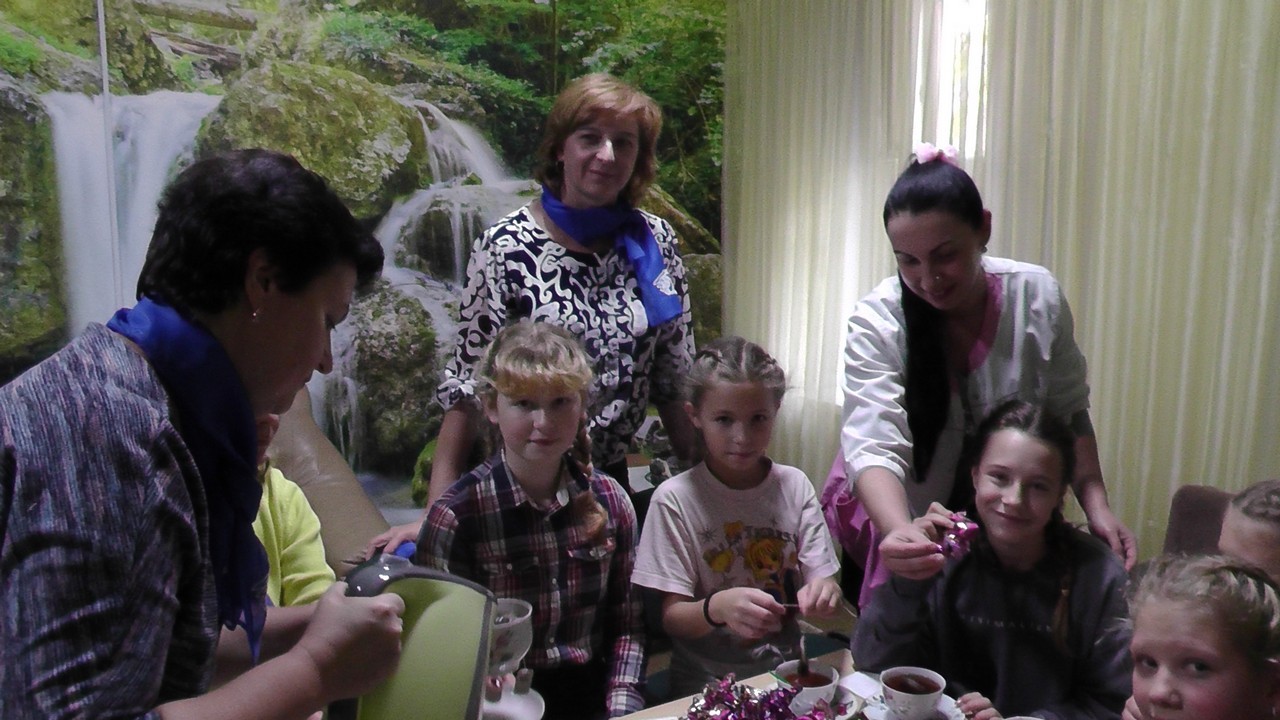 Пять юных очарований в течение более получаса пели и танцевали, покорив тем самым сердца всех присутствующих в актовом зале. На память – поздравительные открытки, выполненные детскими руками, и гуманитарная помощь: средства личной гигиены и одежда. Завершилось душевное общение с юными волонтерами чаепитием. До новых встреч, дорогие наши маленькие друзья!