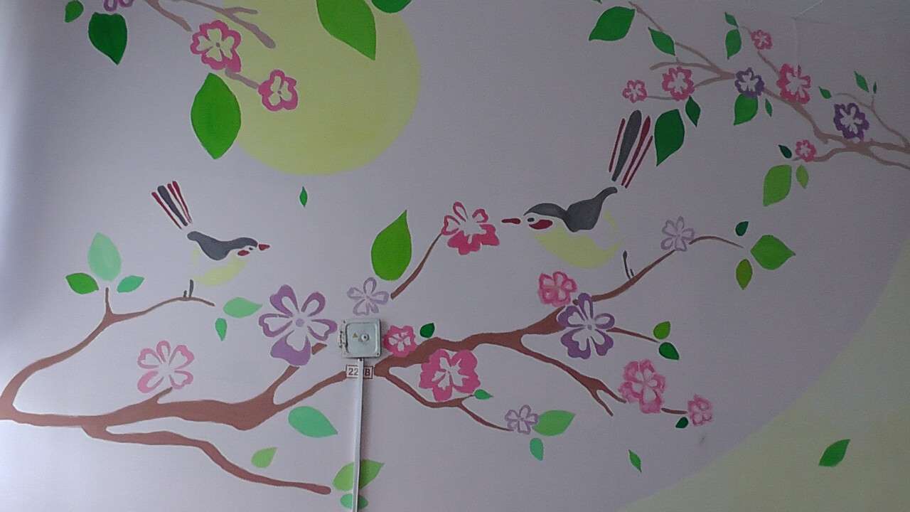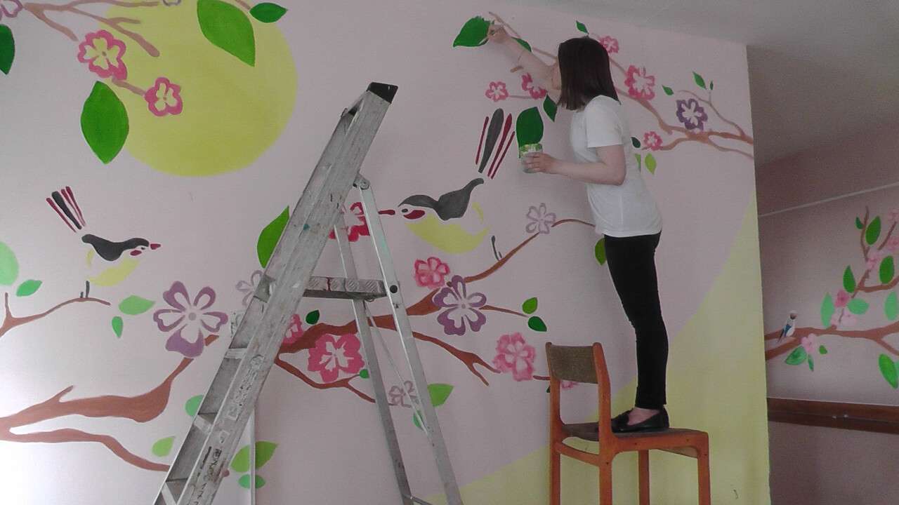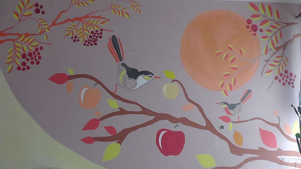 Девушки изобразили на стенах три времени года (исключили только зиму): нежную весну с едва распустившимися зелёными листочками и первыми птичками; солнечное лето с прекрасным полётом бабочек и парой журавлей; задумчивую осень со спелыми яблоками и чудными гроздьями красной рябины. Все это создает настроение покоя, умиротворённости и одновременно радости, словом, вызывает только положительные чувства и эмоции, что так необходимо не только нашим подопечным, но и любому человеку. Спасибо вам, девушки, за красоту, ведь по словам великого Ф. Достоевского только «Красота спасёт мир». И успехов вам в вашей профессии!