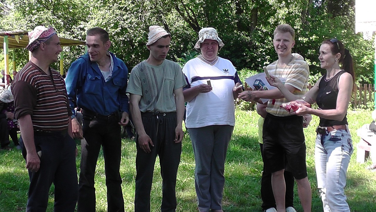 Закрытие декадника происходило в нашем любимом месте отдыха - в парковой зоне. Хорошо, что прекрасная тёплая погода этому благоприятствовала. Награждали не только победителей, но и всех, кто активно принимал участие в различных видах соревнований: и в шахматно-шашечном турнире, и в турнире по теннису, и в командном соревновании. Не забыли и наших судей - Владимира и Татьяну. И на память — фото Галины М. с организаторами этого замечательного праздника Здоровья - специалистом по адаптивной физкультуре, культорганизатором и психологом дома-интерната.