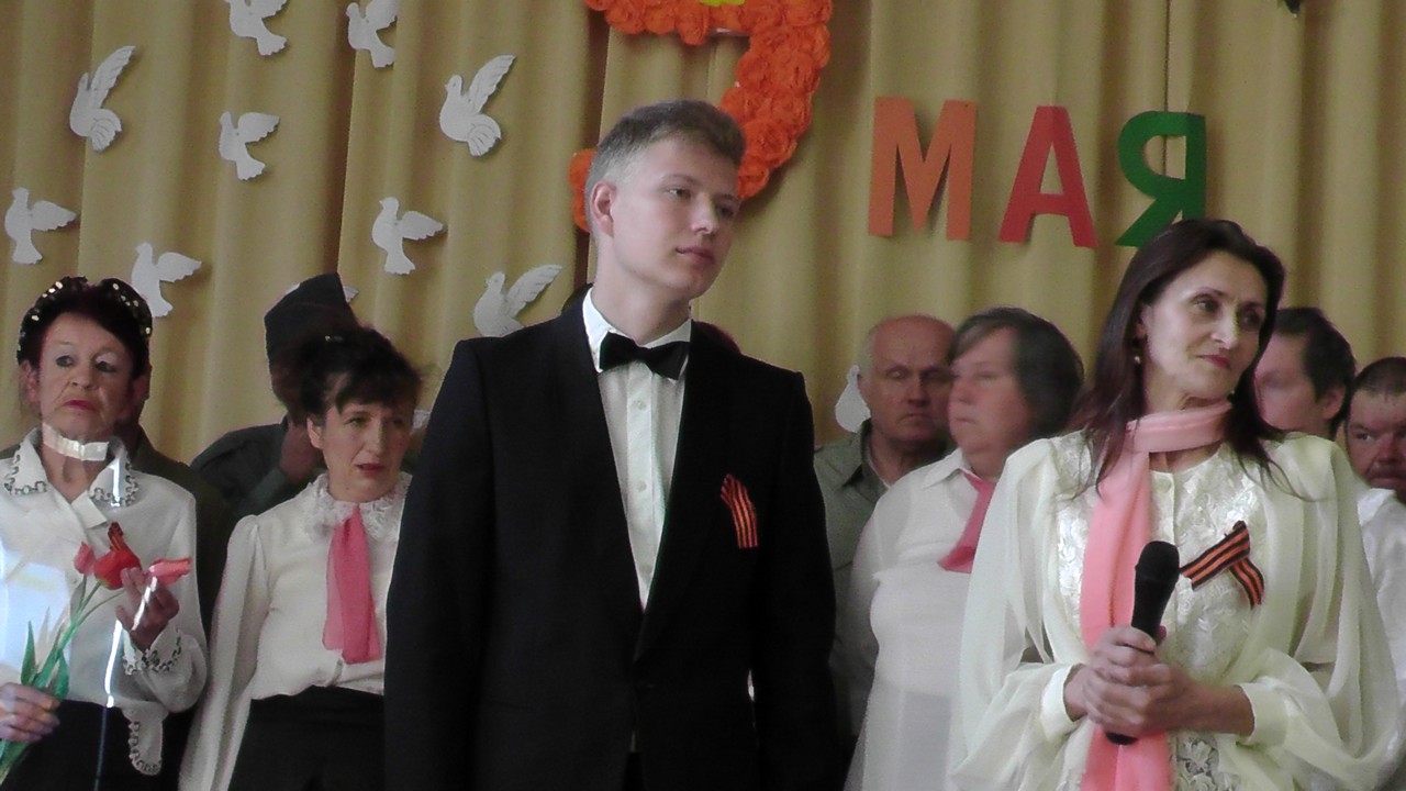 Да, мы родились и выросли в мирное время. Мы не слышали и надеемся, что никогда не услышим воя сирен, извещающих о военной тревоге. Мы не видели разрушенных фашистскими бомбами домов. Но мы знаем об этом из книг и кинофильмов. Мы помним наших героев и о них пели песни, импровизировали военную сценку у костра, им посвящали стихи. Сердечно поздравили нашего единственного ветерана войны. Память о погибших, отдавших свою жизь за нашу честь и свободу, почтили минутой молчания. Завершилась концертная программа, как всегда, исполнением песни «День Победы».