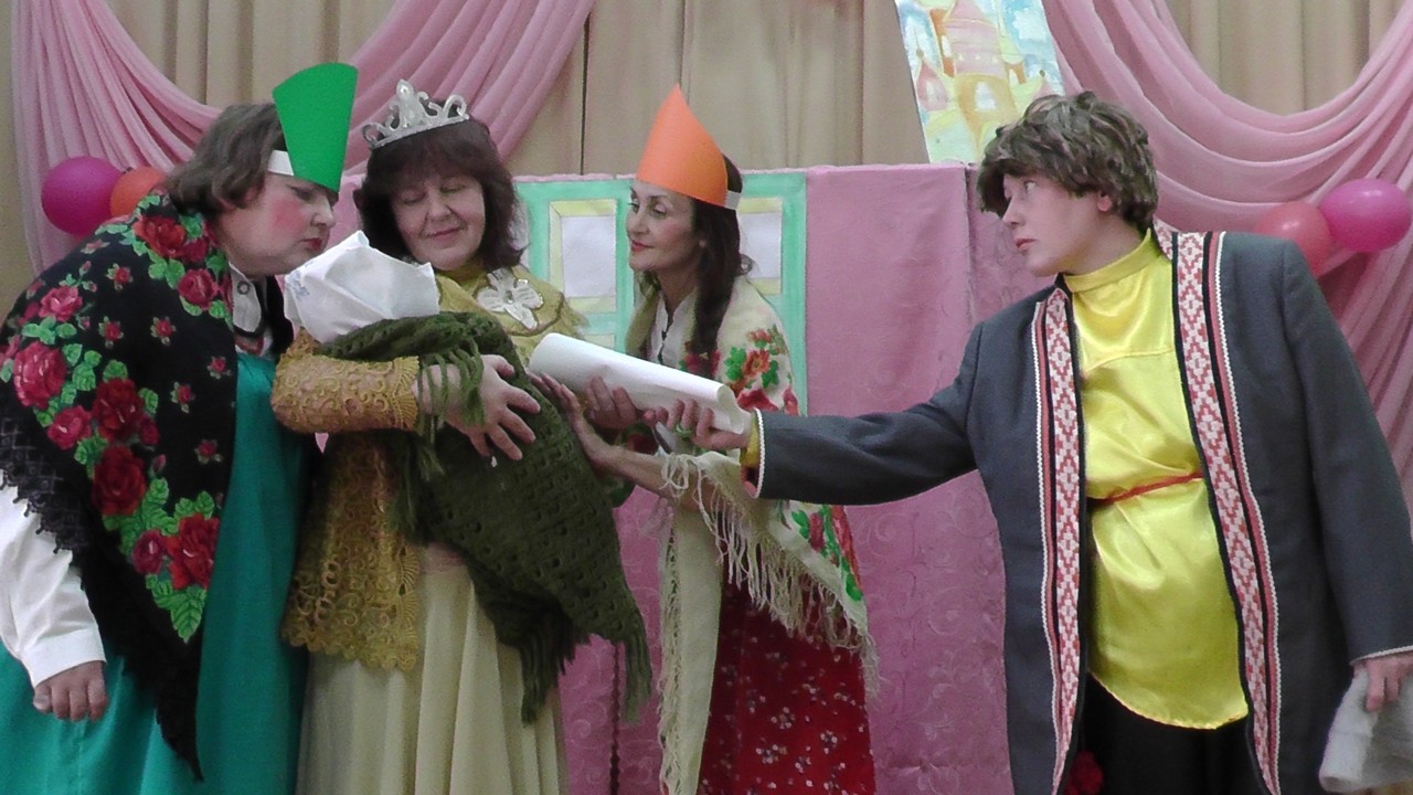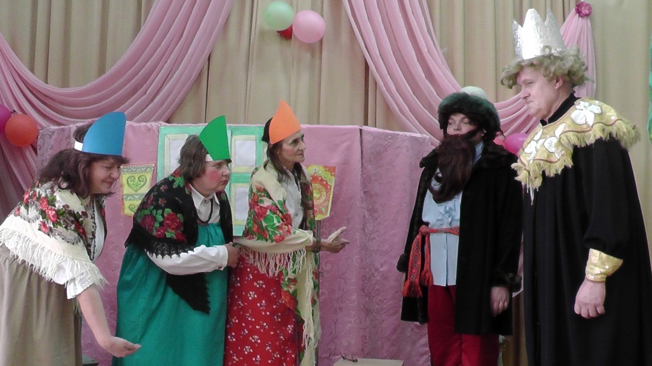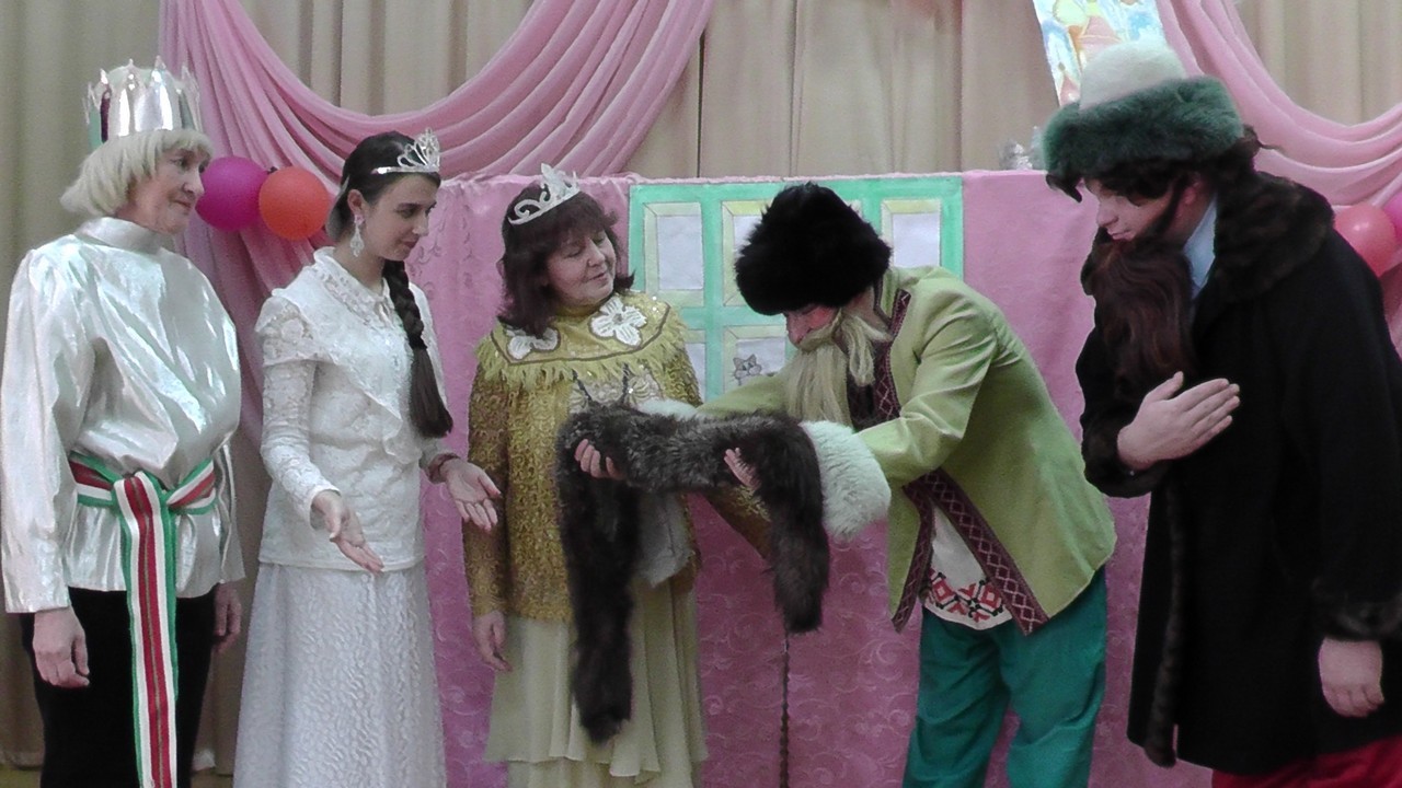 Вчера в нашем доме-интернате состоялась премьера спектакля по одноимённому произведению А.С.Пушкина «Сказка о царе Салтане» кукольно драматического театра «ТЕРЕМОК» (художественный руководитель—Татьяна Денисова). Спектакль, как и предыдущая музыкальная программа, был посвящён Дню матери. Правильно подобранные костюмы и артисты абсолютно точно передавали образ героев всем нам с детства хорошо известной сказки. А наши зрители с укором смотрели на Ткачиху (Демьянова Наталья) и Повариху (Голубцова Татьяна), грустили вместе с царицей (Гаврилова Светлана) и Князем Гвидоном (Сидоренко Наталья), с интересом разглядывали боярина (педагог по социальной работе Ерошкин Иван), купца (инструктор по ЛФ-Захаренко Олег) и гонца (Хобленко Алеся), с очарованием- на Царевну - Лебедь (психолог Ольга Янусова) и радовались счастливой встрече Царя Салтана (Изофатенко Борис) со своей семьёй. «И мы все там были. Мёд, пиво пили. По усам текло, а в рот не попало...»
