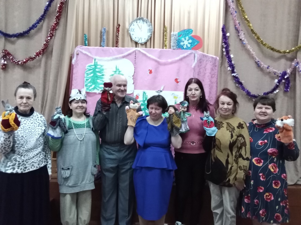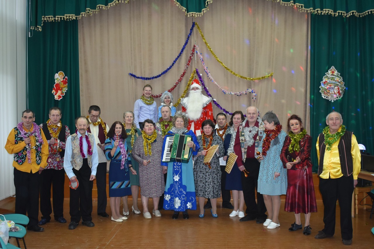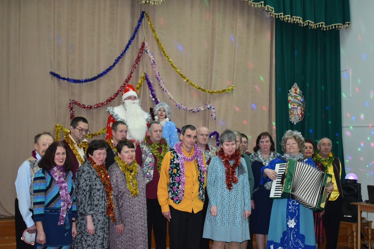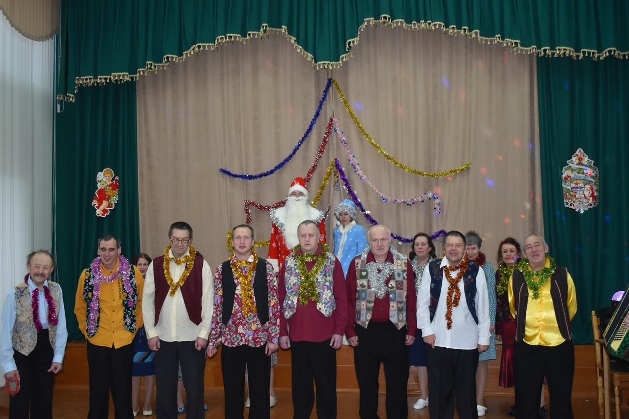 Хоровой коллектив «Вясёлка» и его солисты исполняли весёлые новогодние песни. Мужская вокальная группа «Добры молодцы» - русскую народную песню «Во кузнице». Но кульминацией новогодней программы стало выступление фольклорного оркестра шумовых инструментов «Сялютскiя музыкi», исполнившего польку «Веселуха» на деревянных ложках, ксилофонах, используя бубенцы, бубны и маракасы. Перед тем как проститься с подопечными, Дед Мороз и Снегурочка раздали новогодние подарки. Завершились новогодние праздничные мероприятия спектаклем «Рукавичка» кукольно-драматического театра «Теремок», художественным руководителем которого вот уже 12 лет является Денисова Татьяна Петровна.