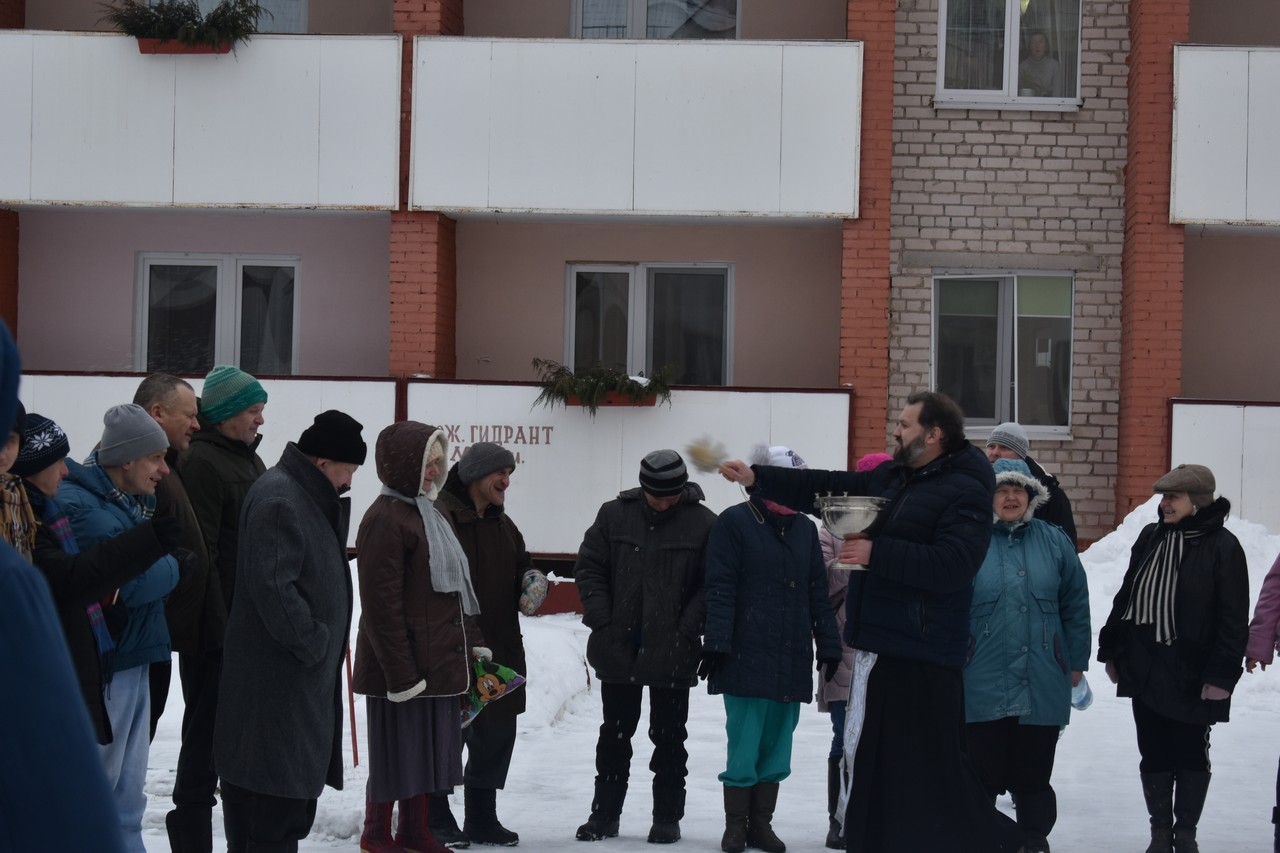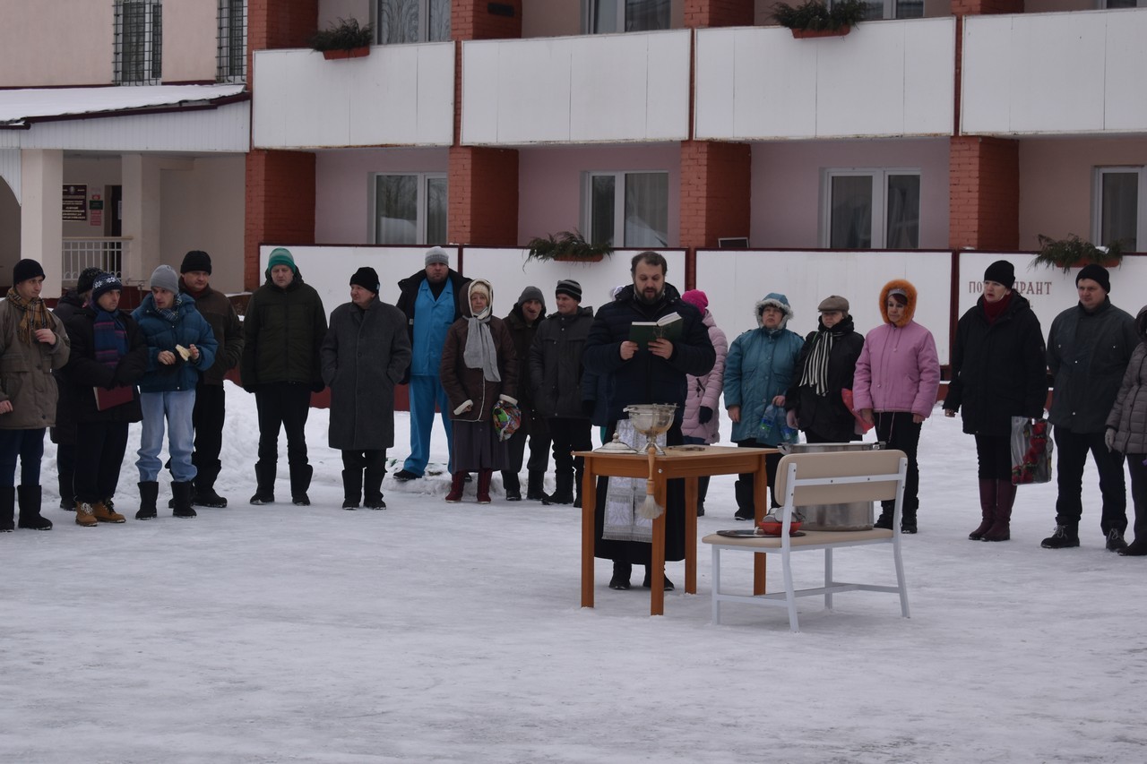 А 19 января, как и много лет подряд, протоиерей Павел Мацук – настоятель храма Смоленской Иконы Божьей Матери а/г Октябрьская, посетил наш дом-интернат. В память того, что Иисус Христос своим крещением освятил воду, отец Павел провёл обряд освящения воды и окропления ею присутствующих, что означает новое рождение и просвещение человека Божественным светом.